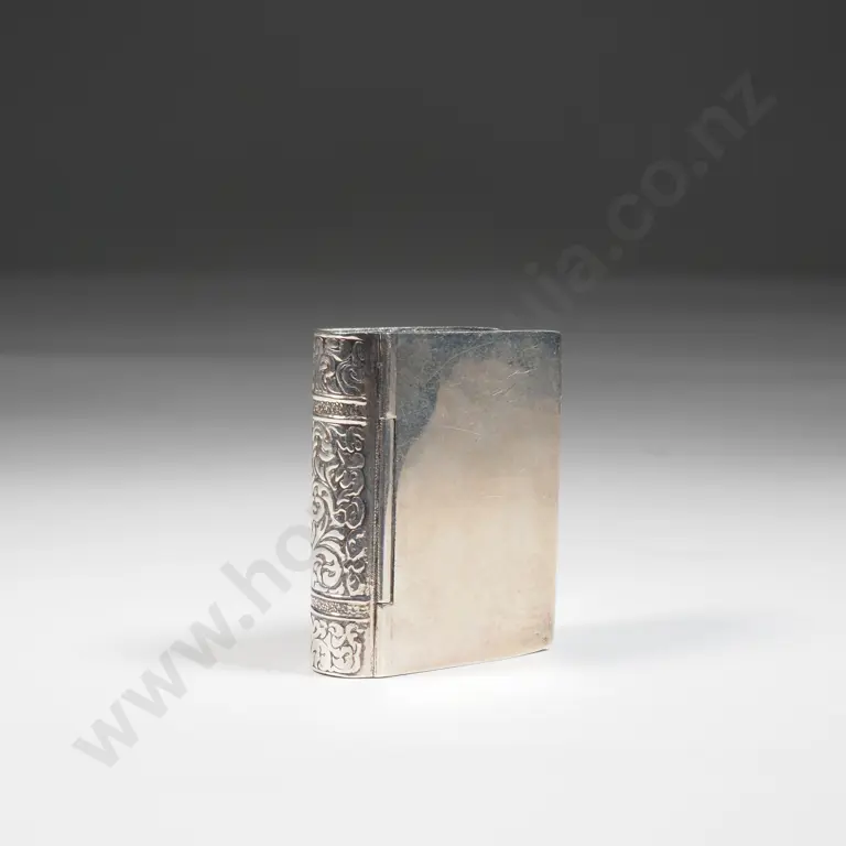 Small Box in The Form Of A Book with Engraved Spine. Marked 925