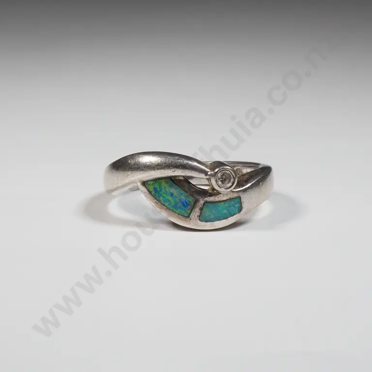 Sterling Silver Enamel & White Stone Ring