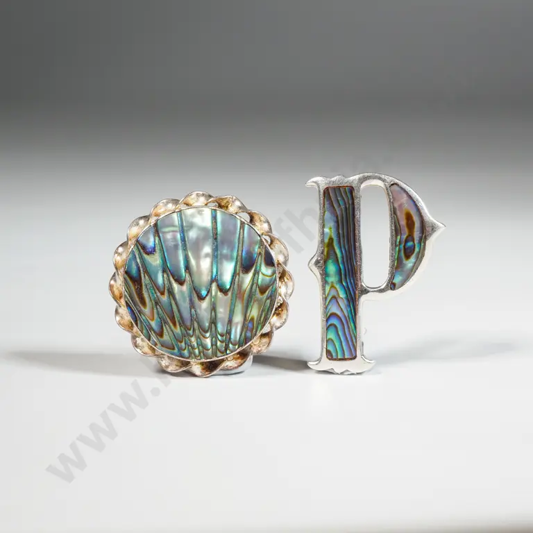 Two Sterling Silver Paua Brooches
