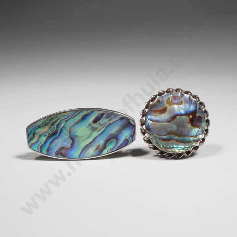 Two Sterling Silver Paua Shell Brooches