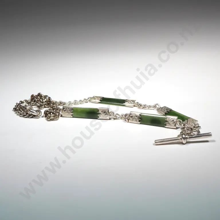 Colonial Sterling Silver & Greenstone T Bar Fob Necklace Estimate: $200 - $400