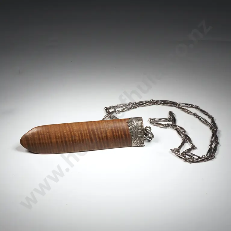 New Zealand Native Wood pendant w Sterling Silver Fern Leaf End Cap on a Sterling Silver Chain Estimate: $250 - $450