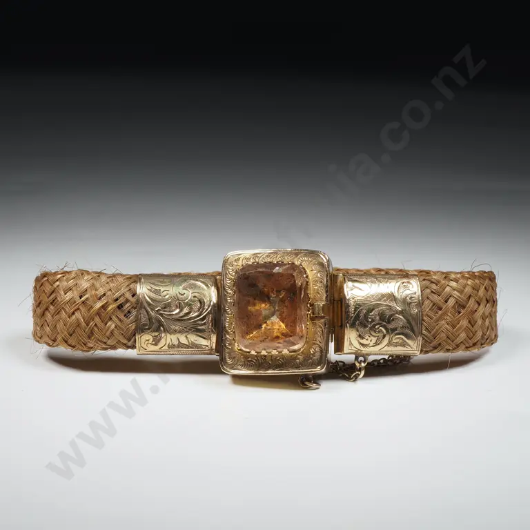 Impressive New Zealand A Kohn Mourning Bracelet w 15ct Gold Ornate Mounts & Large Clear Gem in Period Kohn Box Estimate: $1,400 - $1,800