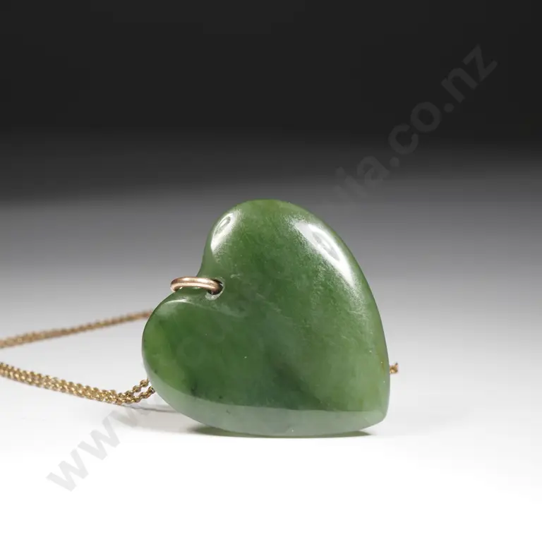 Antique Greenstone Heart Pendant w 9ct Gold Bail & Plate Chain Estimate: $200 - $400