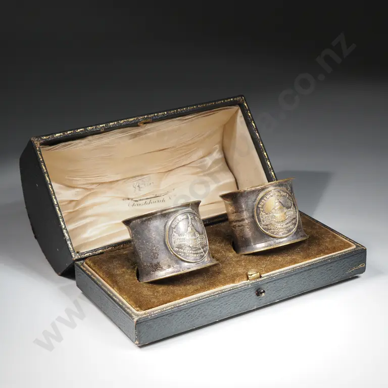 Pair of 1925/26 Dunedin Exhibition S/P Napkin Rings in Original Petersons Limited Christchurch Box