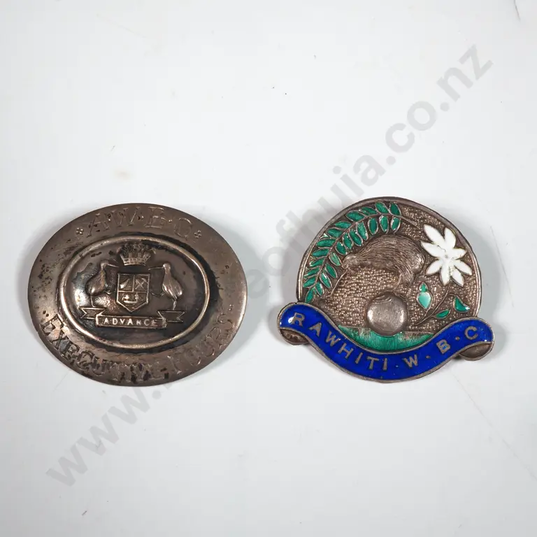 Two Sterling Silver Bowling Club Badges, One with Enamelling