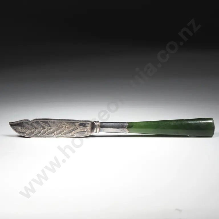 Sterling Silver & Greenstone Butterknife w English Hallmarks Estimate: $80 - $120