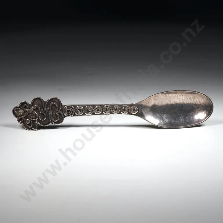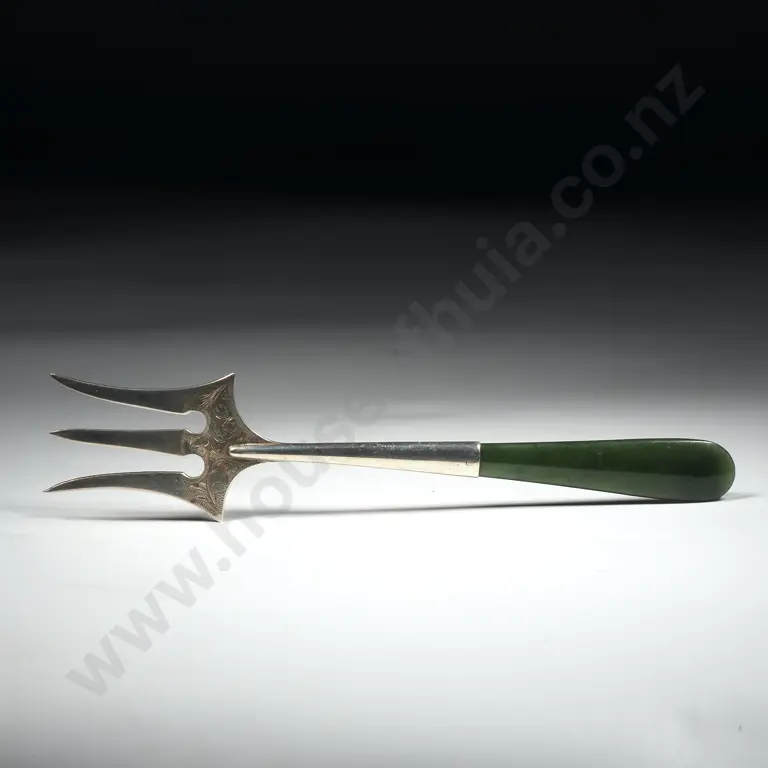 Greenstone & Sterling Silver Bread Fork with Engraved Tiki & Leaves