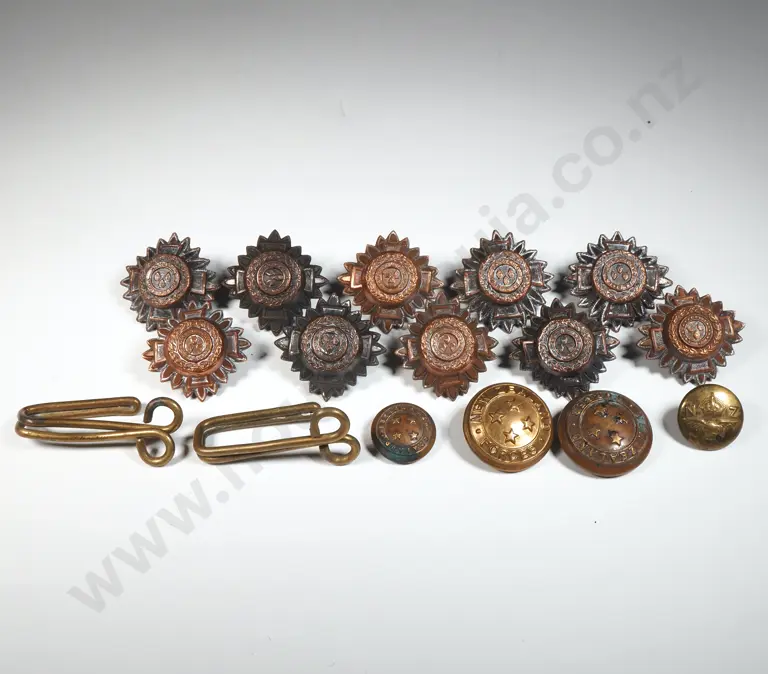 NZ Brass Shoulder Title & Numbers, & a WWII Dog Tag.
