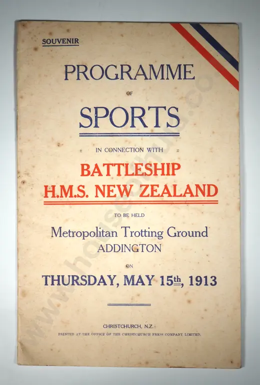 1913 HMS New Zealand Metropolitan Trotting Ground Addington Programme of Sports