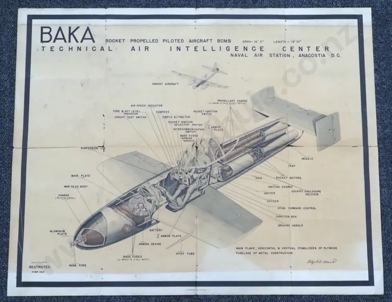 WW2 American Instruction Diagram on BAKA Japanese Rocket Propelled Piloted Bomb