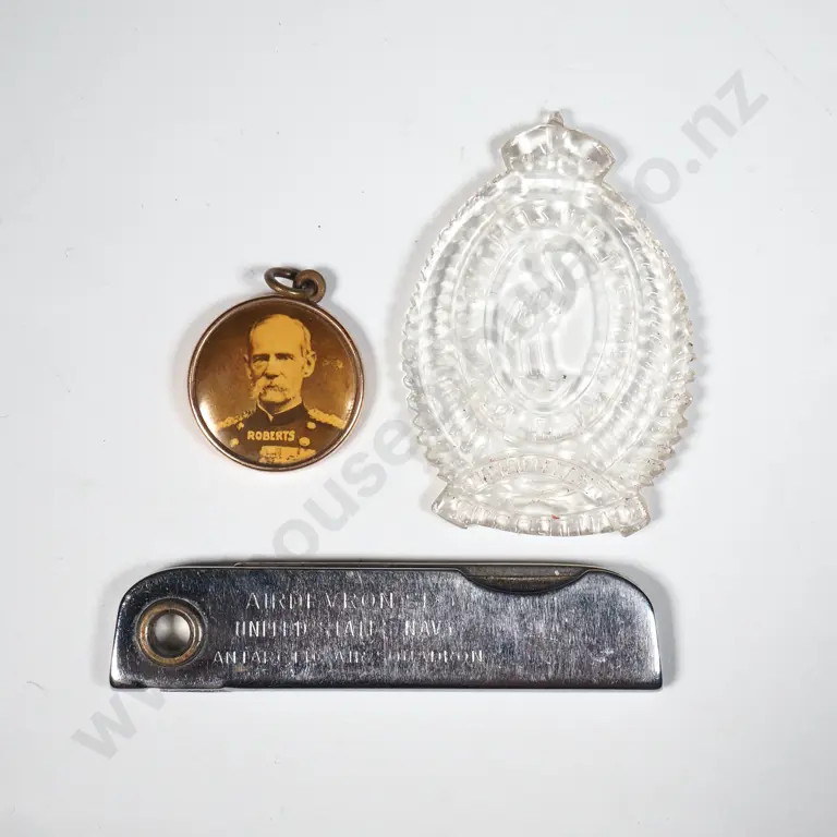 Three Items : A Second Boer War Gold Plated Pendant Containing Photos Of Military Commanders Of Symons & Lord Roberts