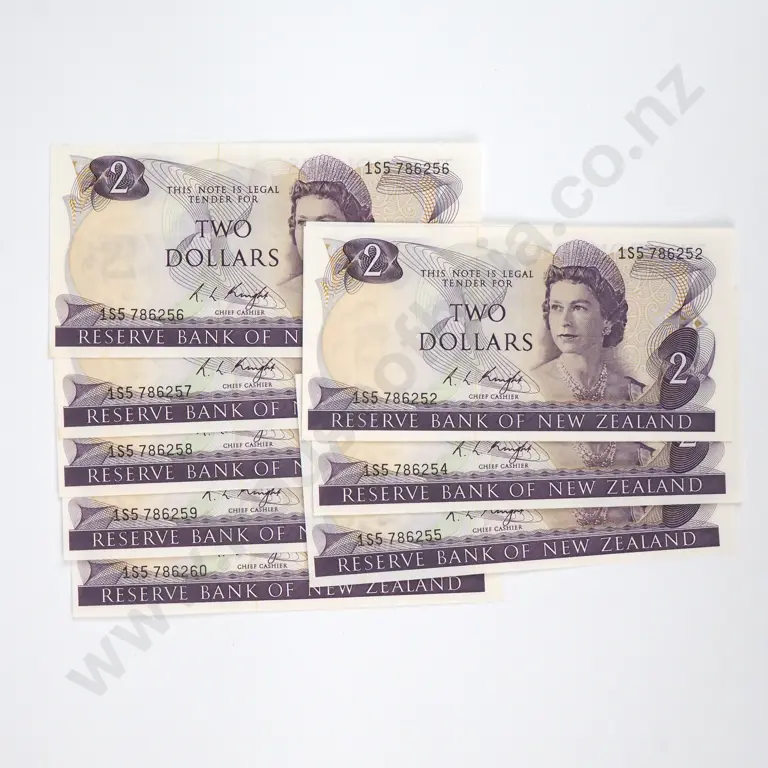 Nine Consecutive Two Dollar Hardie Type I Banknotes - AUNC Total CV $225