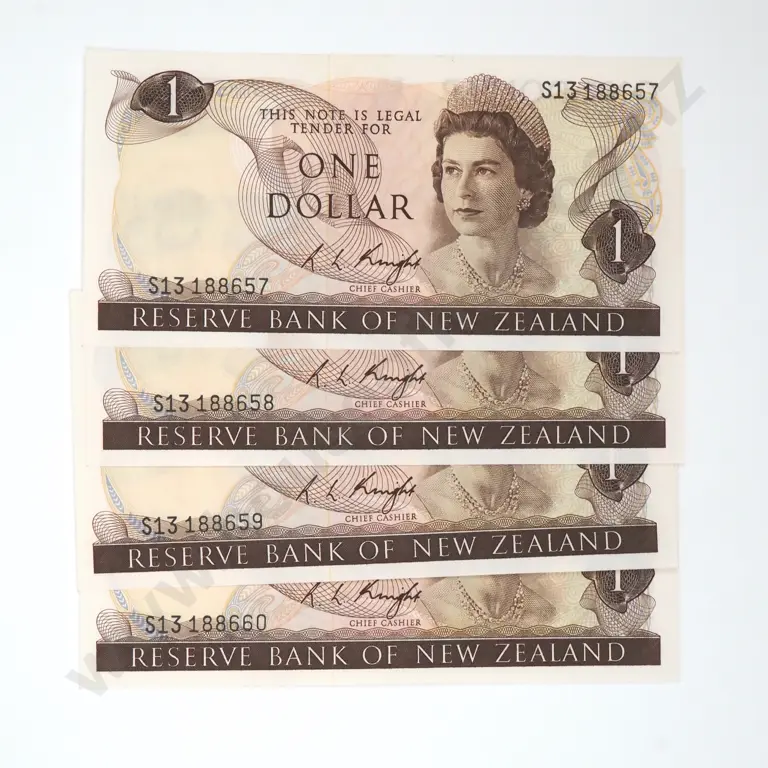 Four Consecutive One Dollar Knight Banknotes - AUNC