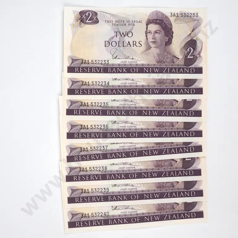 Eight Consecutive Two Dollar Hardie Type I Banknotes - AUNC Total CV $200