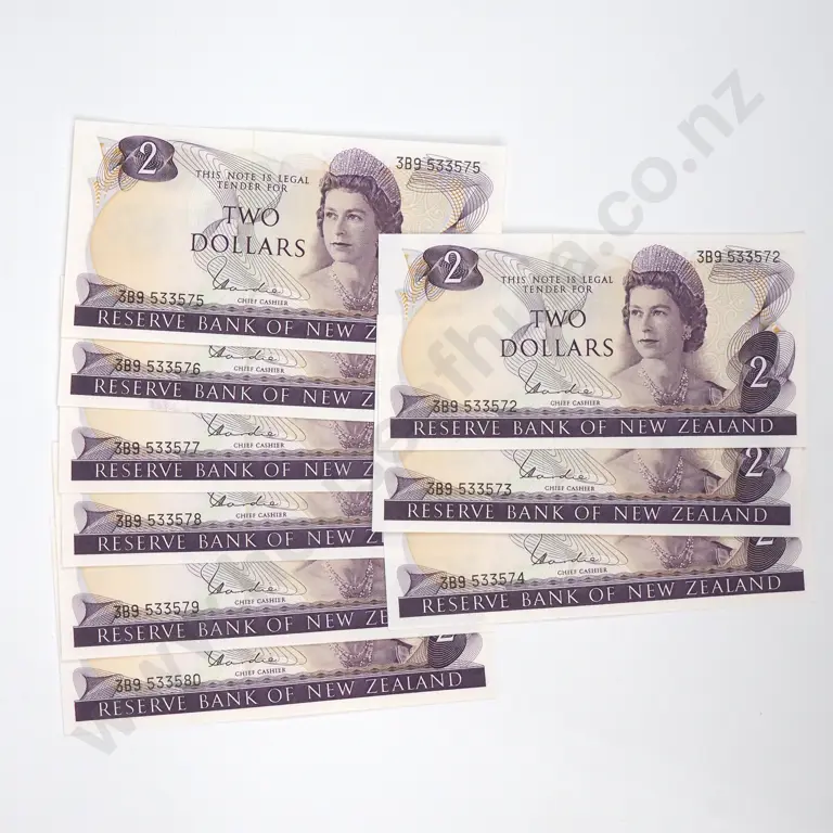 Nine Consecutive Two Dollar Hardie Type I Banknotes - AUNC Total CV $225