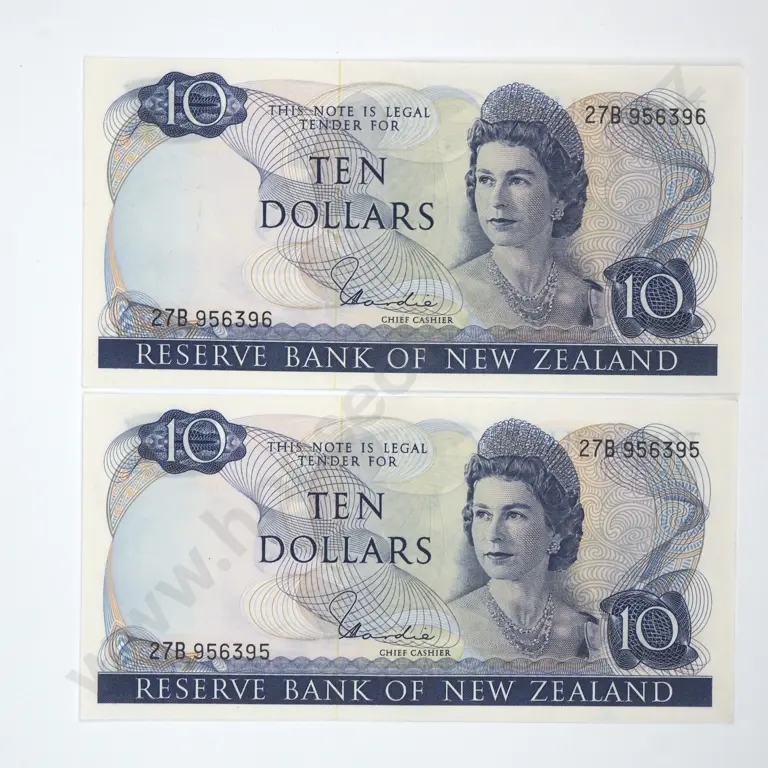 Consecutive Pari of Ten Dollar Hardie Type I Banknotes - AUNC Total CV $250
