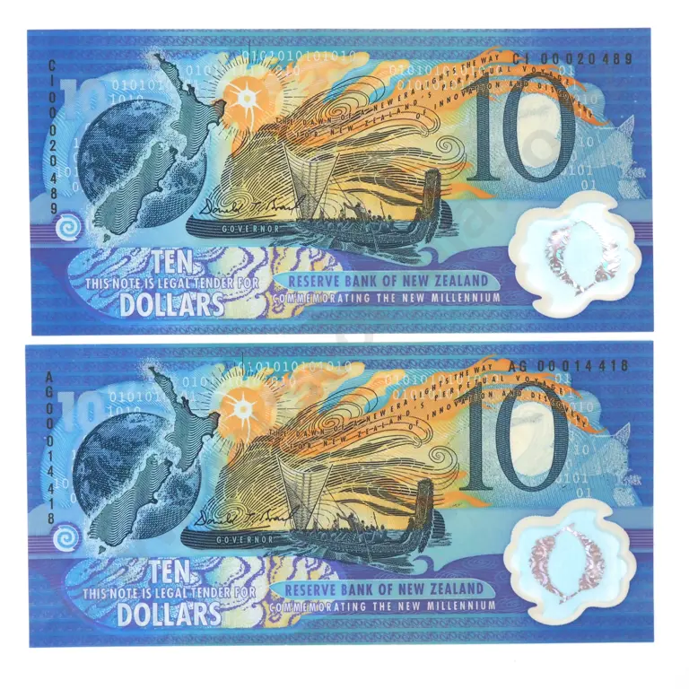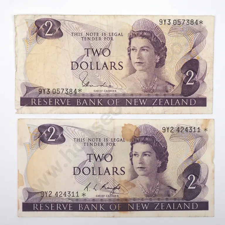 Two New Zealand Five Dollar Brash Banknotes AUNC