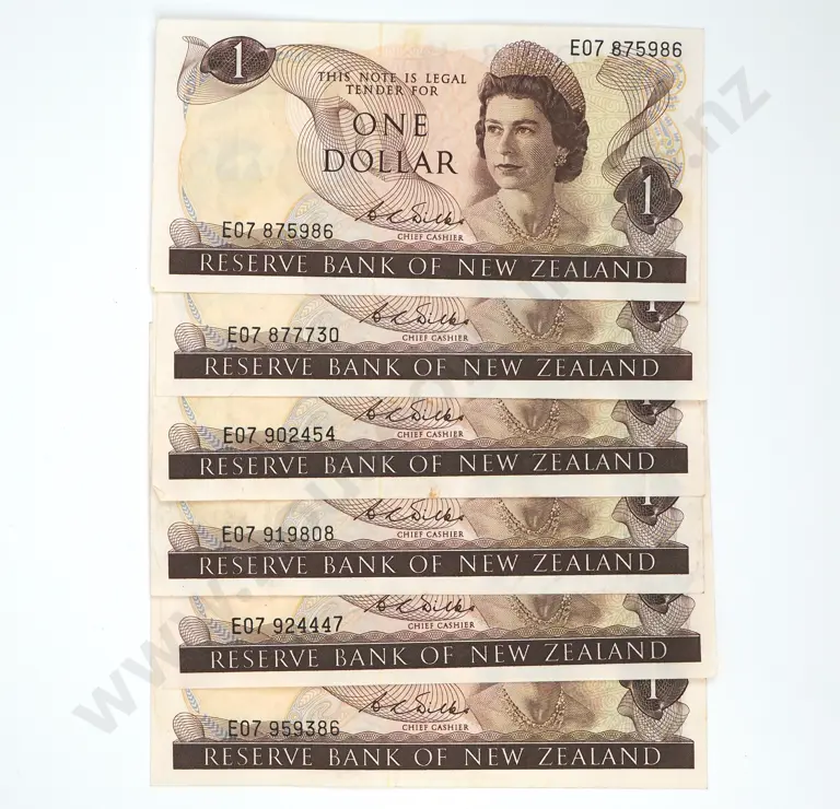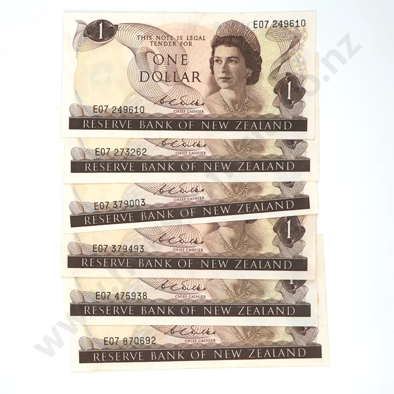 Six One Dollar Wilks Banknotes - E07 Prefix