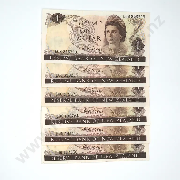 Six One Dollar Wilks Banknotes - E08 Prefix