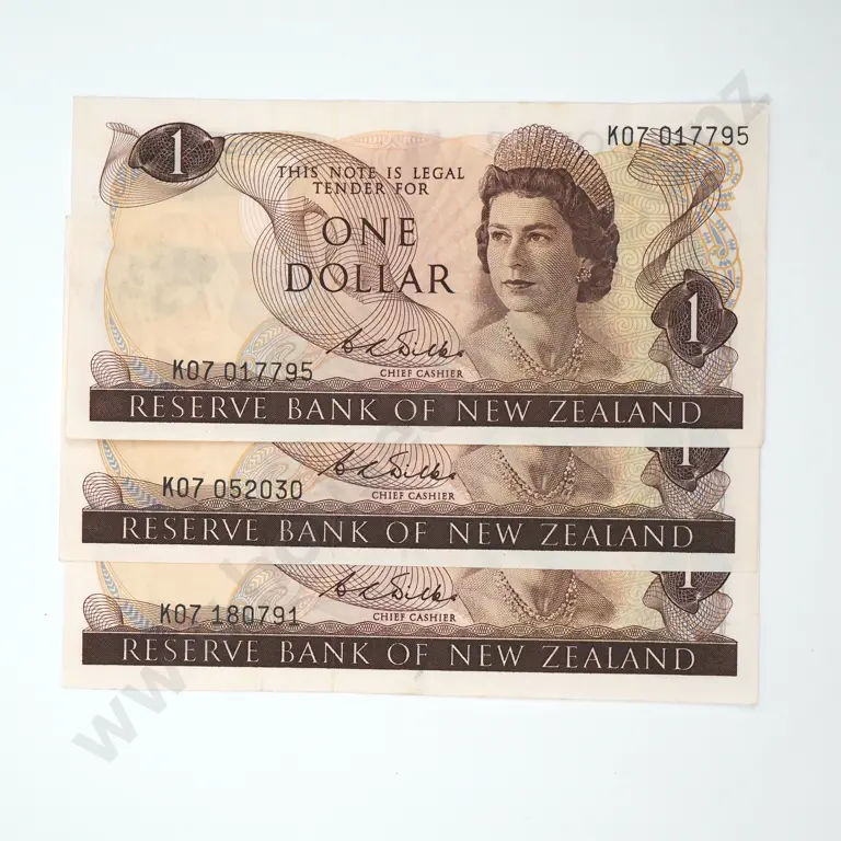 Three One Dollar Wilks Banknotes - K07 Prefix