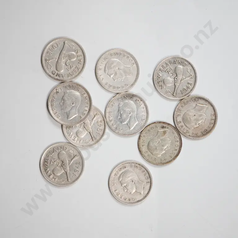10 1942 New Zealand Threepence Coins