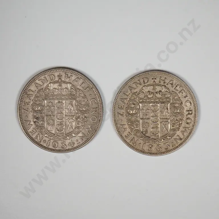 1933 & 1934 New Zealand Half Crown Coin