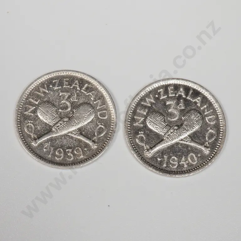 Two New Zealand 50% Silver Threepence Coins in Better Grades
