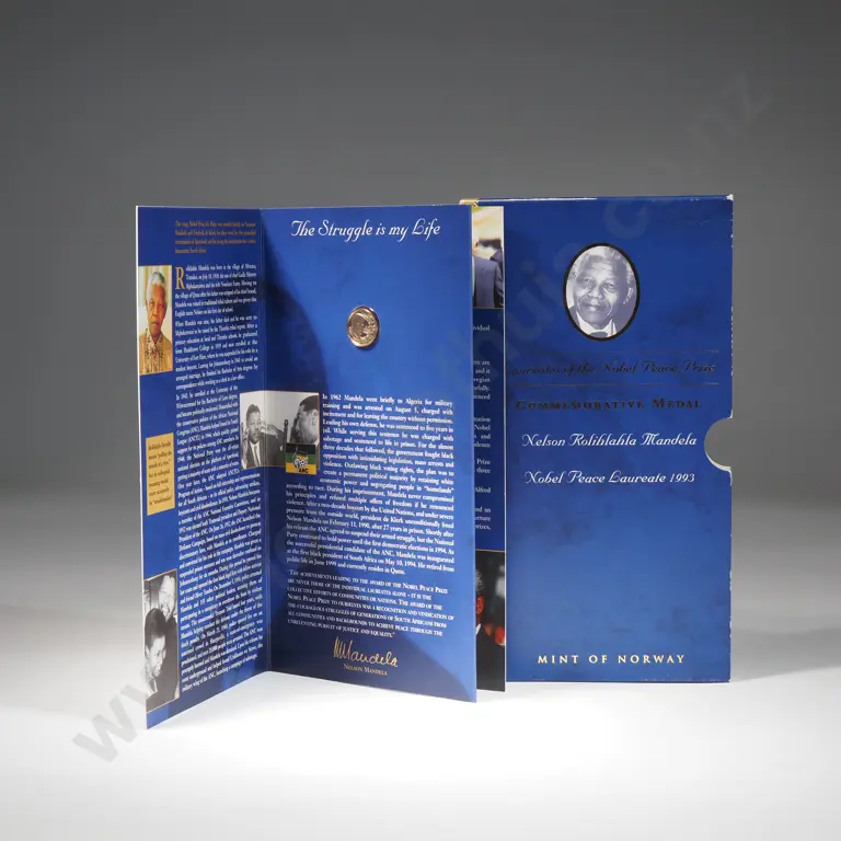 1993 South Africa One Ounce Sterling Silver Medallion - Nelson Mandel & F De Klerk Nobel Peach Laureates