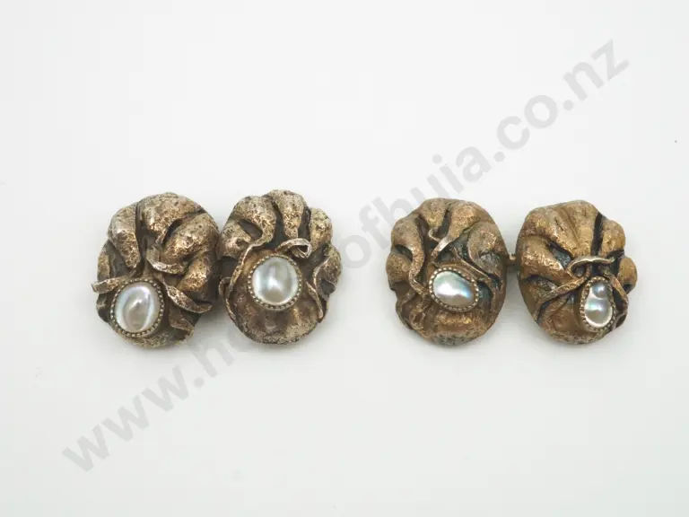 Freeform Textured Sterling Silver & Pearl Cufflinks Estimate: $80 - $120