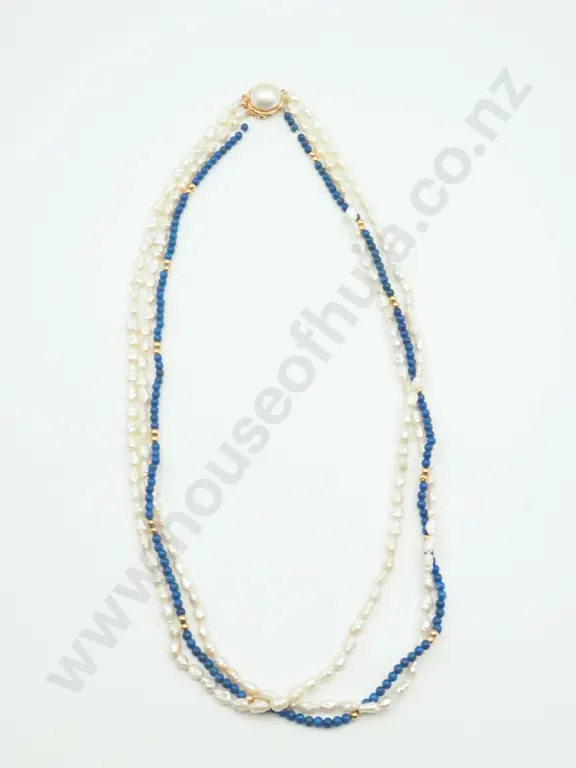 Lapis & Rice Pearls on 14ct Gold Half Pearl Clasp w 14ct Gold Beads Estimate: $500 - $800