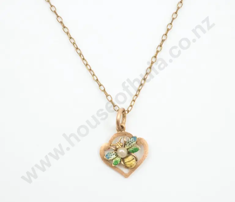 Art Nouveau Enameled Bee Pendant in 9ct Gold Estimate: $150 - $300