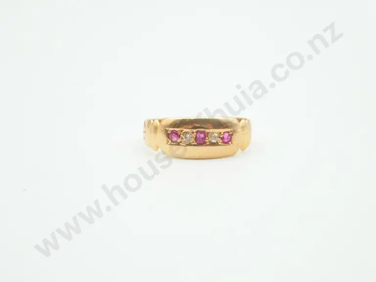 Ruby & Diamond 18ct Gold Five Stone Ring Estimate: $300 - $350