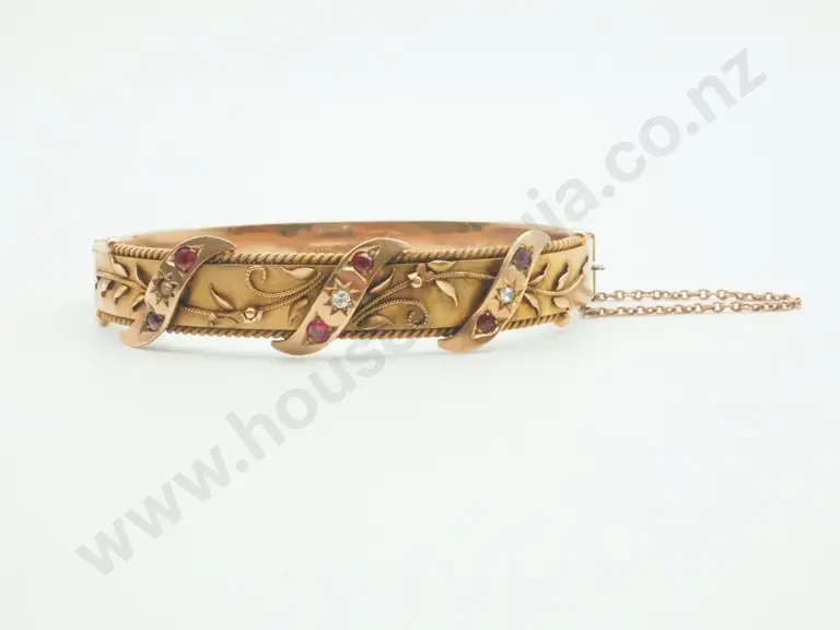 Ruby & Diamond Hinged 9ct Gold Bracelet Estimate: $650 - $750