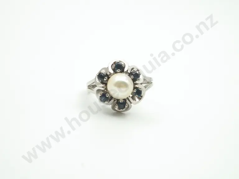 Sapphire & Pearl Ring in 14ct White Gold Estimate: $400 - $600