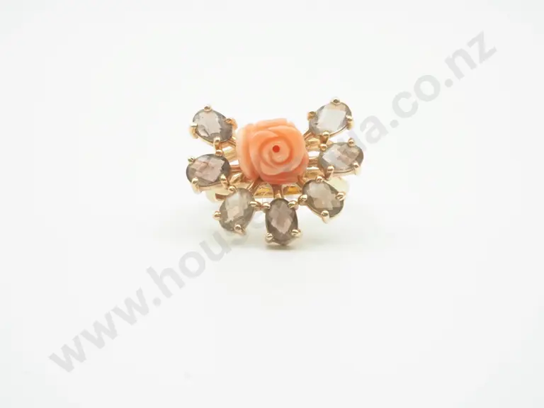 Highly Decorative Coral Flower Ring w Topaz in 14ct Gold Estimate: $500 - $600