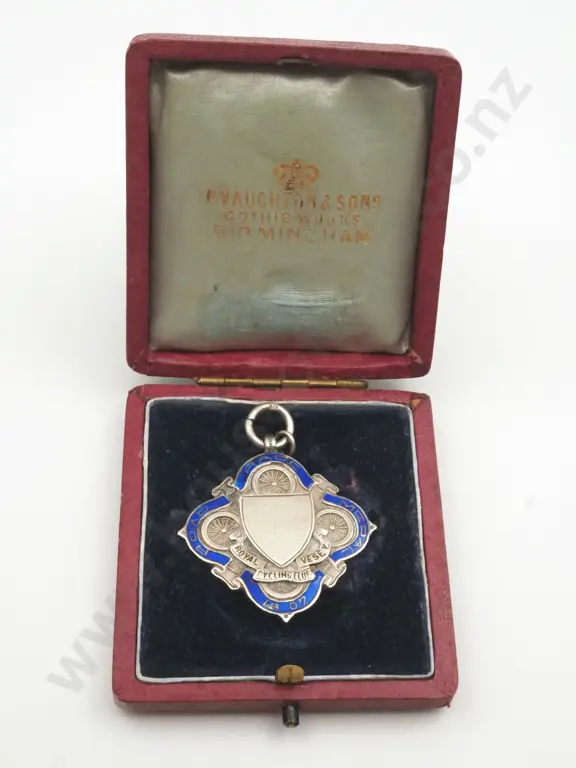 Enamelled Sterling Silver Fob for Cycling in Original Box of Issue Estimate: $60 - $80