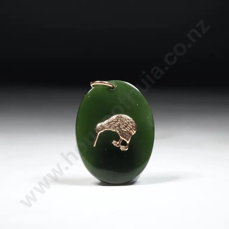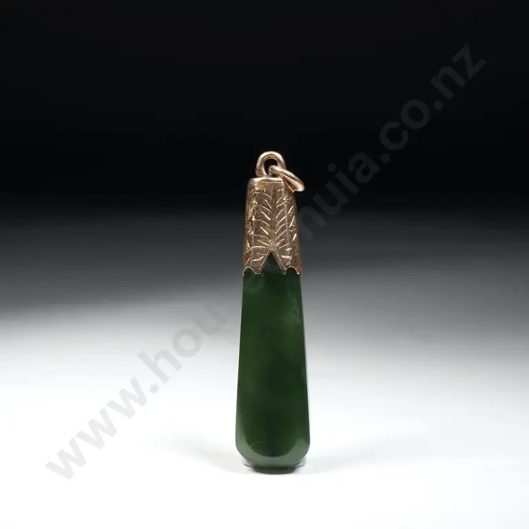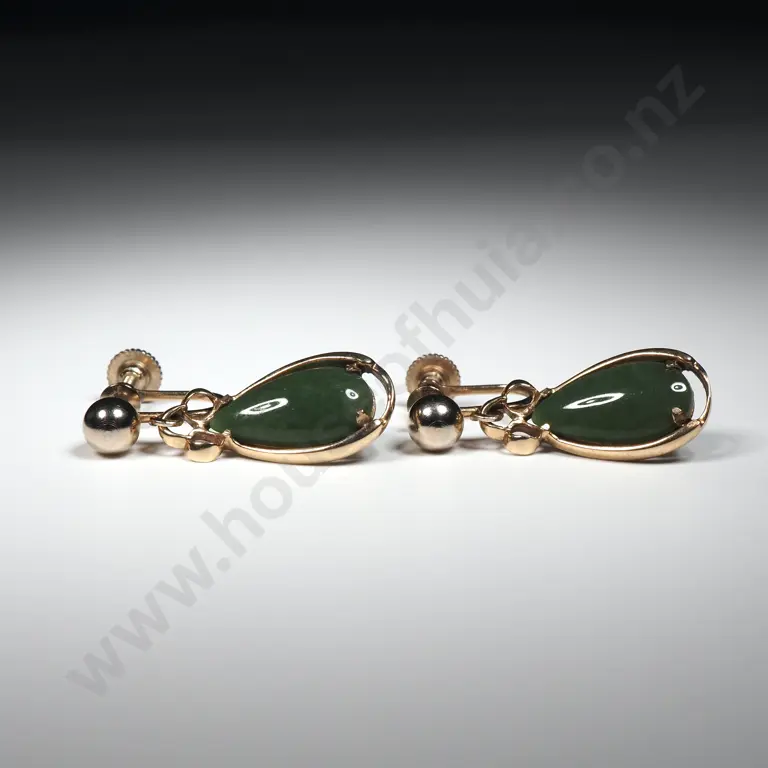 Colonial 9ct Gold Greenstone Fob Chain Necklace w Four Greenstone Bars & NZ Fern Greenstone Heart