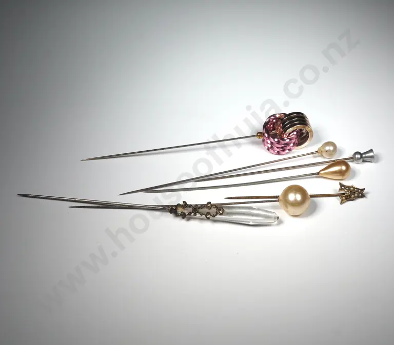 9ct Fine Gold Chain & a Gold Tone Stick Pin Inset w A Green Stone