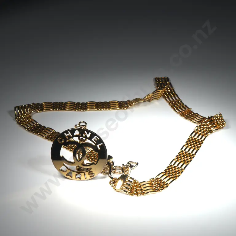 Gold Tone Chain w Amethyst Coloured Crystal Central Swag. A/F