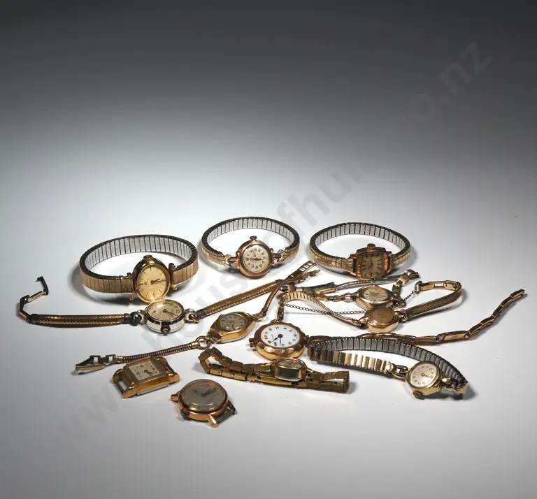 Assorted Lot of 12 Ladies Rolled Gold Mechanical Movement Wristwatches - Sold As Is For Restoration & Parts