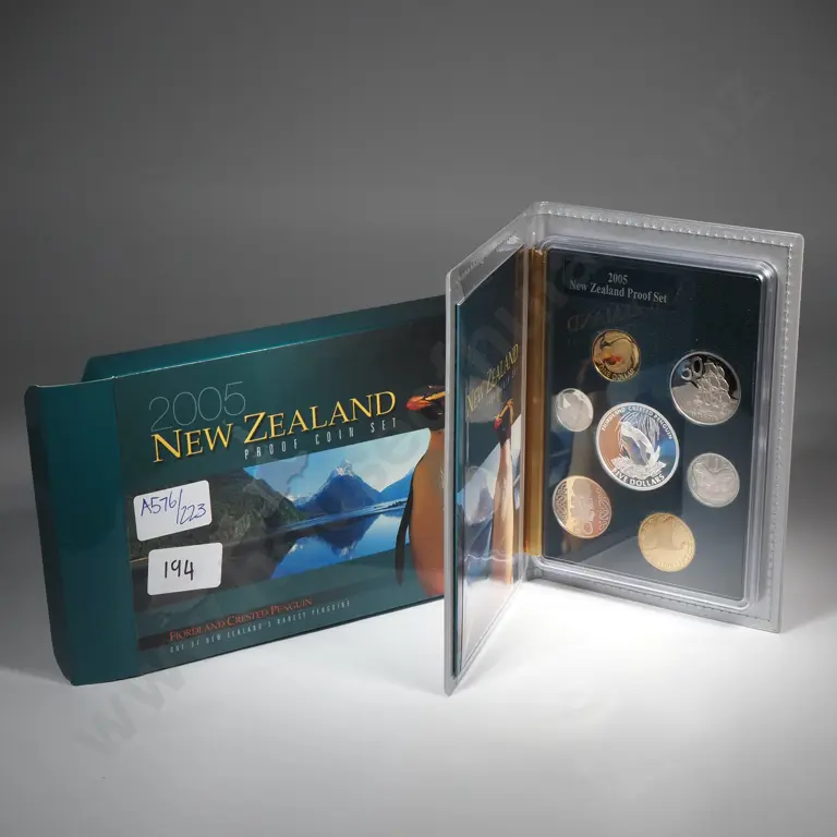 2005 New Zealand Proof Coin Set w Silver One Dollar Coin CV $175