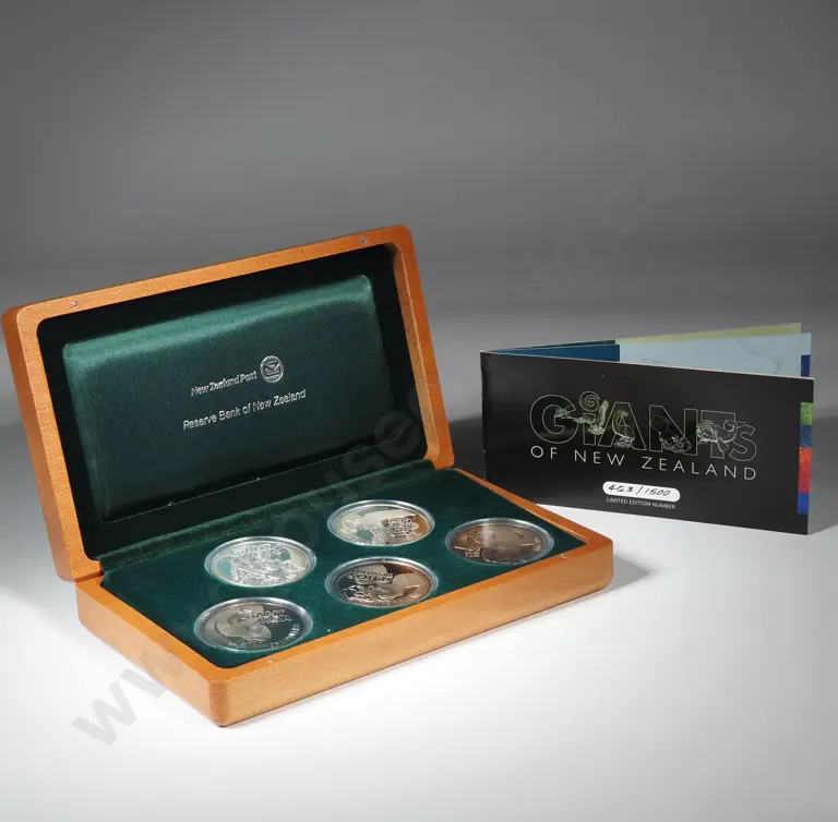2009 Giants of New Zealand Five One Ounce Silver Proof Coin Set CV $425