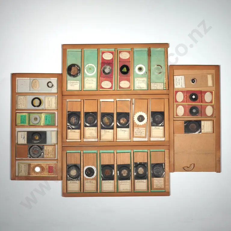 Vintage Wooden Microscope Slide Cabinet w Large Quantity of Slides, Some w Specimens