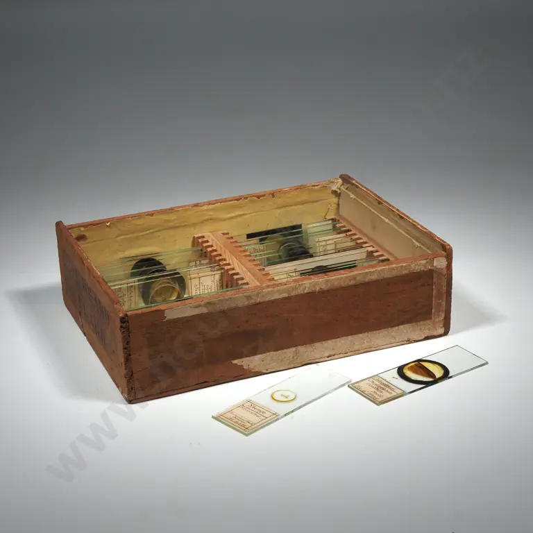 Quantity Of Microscope Glass Slides w Specimens in Wooden Box