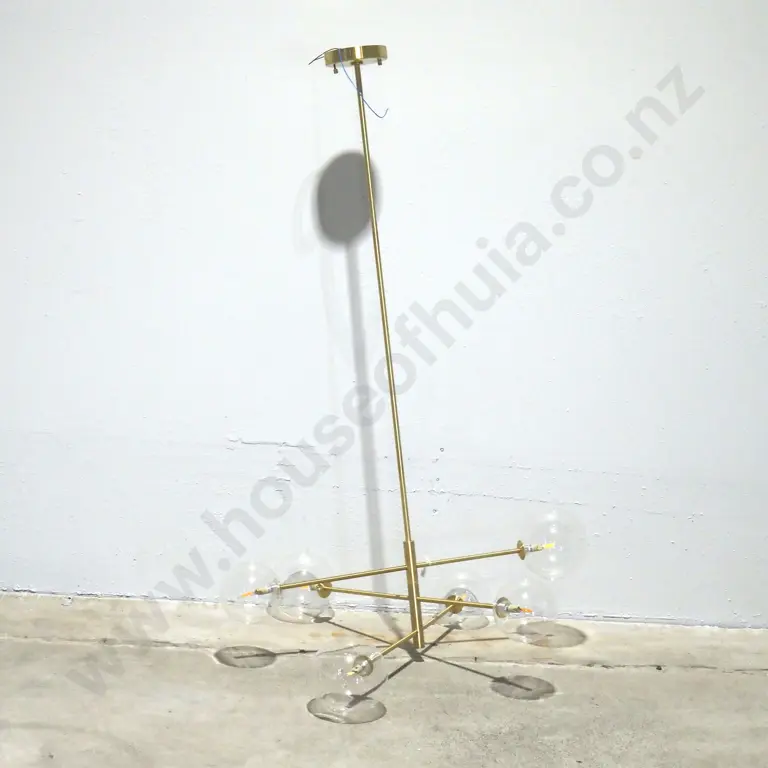 Modern Ceiling 6 Light Pendant Brass & Glass Pendant