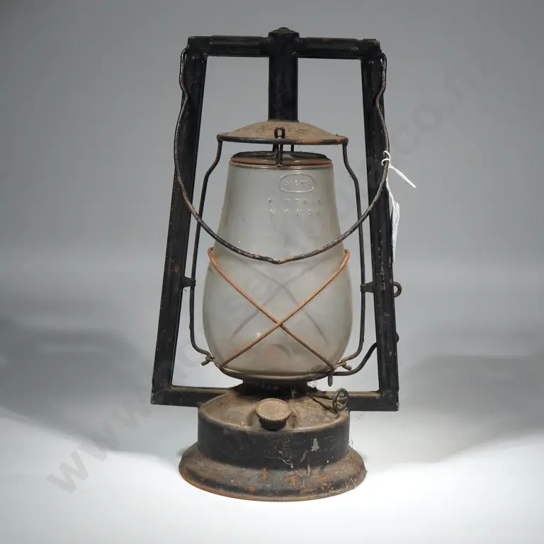 Antique Dietz Oil Lantern w Swing Handle & Original Fitzall Clear Glass Hurricane Shade