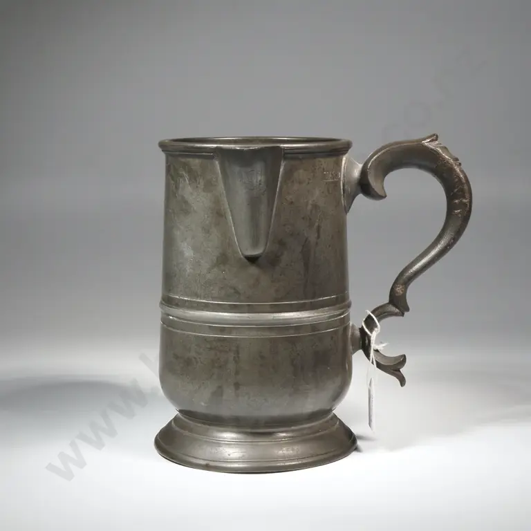 Early Victorian Pewter Quart Jug w Spout & C-Scroll Handle