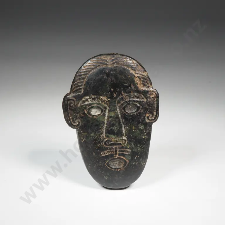Chinese Hongshan Black Jade Carved Male Head Mask