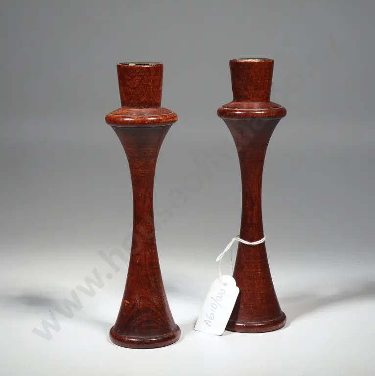 Pair of Modernist Wooden Candlesticks
